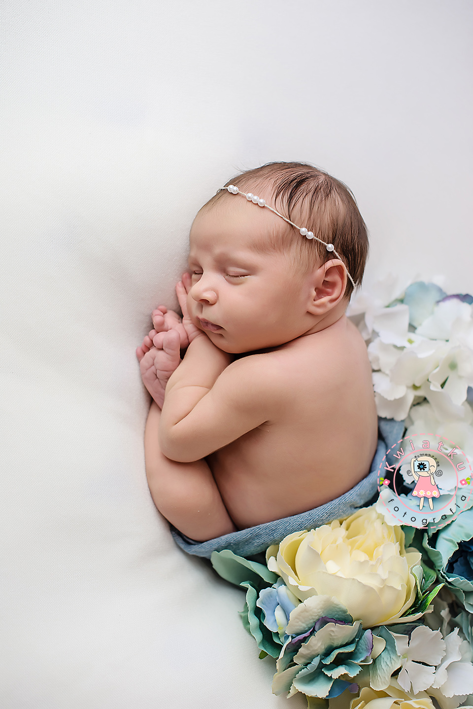 Zawsze zachęcam abyście przynosili na sesje noworodkowe różne przedmioty, aby dodatki były bardziej osobiste. Gdy zobaczyłam tego konika morskiego-przytulankę wiedziałam, że musimy ten morki akcent pociągnąć na całą sesję. Do tego mama wybrała błękit jako kolor przewodni więc wszystko zaczęło się ze sobą zgadzać. Najczęściej fotografuję dziewczynki w różu, żółcieniach lub fioletach. Sami przyznajcie, że błękit jest równie twarzowy.